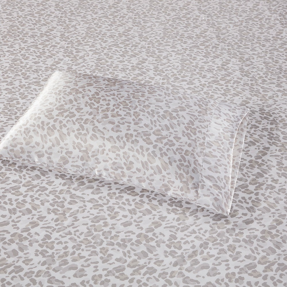 | Madison Park Essentials Twin 1 Flat Sheet: 66"W x 96"L 1 Fitted Sheet: 39"W x 75"L + 14"D 1 Pillowcase: 20"W x 30"L 100% polyester Glam/Luxury Style Includes 3 Piece(s) Machine washable Treat yourself and your bedroom with the elegance of these luxury bed sheets. These wrinkle free satin sheets are silky smooth to the touch and feature a glamorous leopard animal print that elevates the style and comfort of your bed. Gentle on your skin and hair, this satin sheet set helps reduce damage causing friction, making it an essential part of your beauty self-care routine. Additional matching satin pillowcases are available and sold separately. |