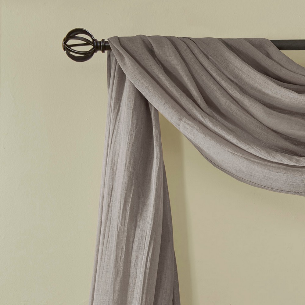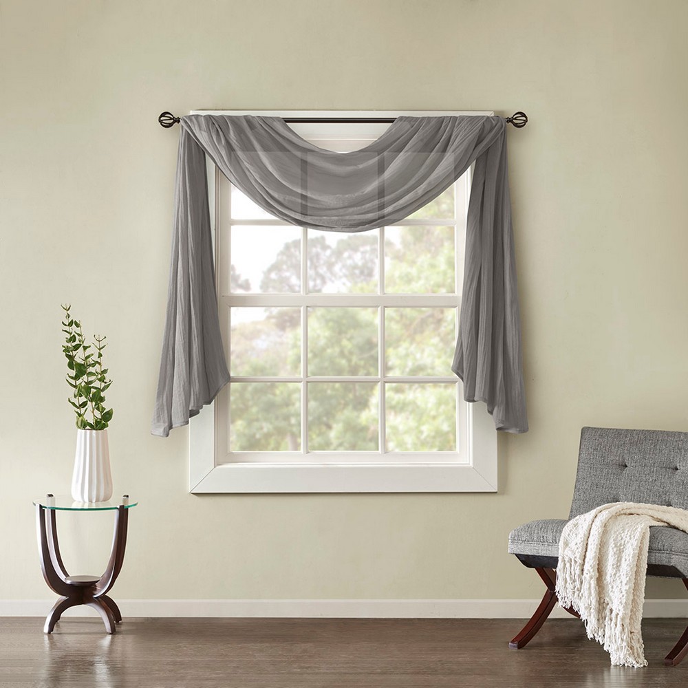 | Madison Park 42x144" 1 Window Scarf: 42"W x 144"L 100% Polyester Modern/Contemporary Style Includes 1 Piece(s) Machine Washable Soften the edges of your window, with our Madison Park Harper Solid Crushed Sheer Scarf. This light grey scarf features crushed detailing for beautiful texture, while the lightweight sheer fabric provides easy draping and an airy touch to your decor. Four tabs are also included to make the DIY assembly easy so you can drape the scarf to best fit your window. For a complete look, layer this scarf with coordinating panels or prints in our collection for a more custom appeal. |