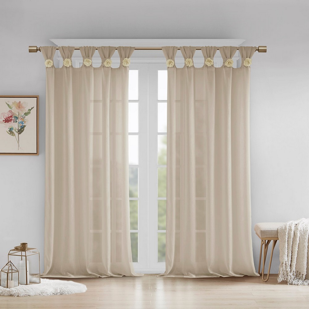 Simple and feminine in all the right ways, Madison Park Rosette Tab Top Solid Window Panel Embellished with Flower offers a gorgeous one-of-a-kind look to your home. This natural linen color panel features a tab top finish and beautiful removable floral pins that give your room a decorator’s touch. The lightweight faux linen semi-sheer fabric filters the perfect amount of light into your home, while creating a soft airy feel - for the perfect shabby chic update to your decor. Window panel is machine washable for easy care, while removable floral pins are spot clean only. Fits up to a 2" diameter rod.