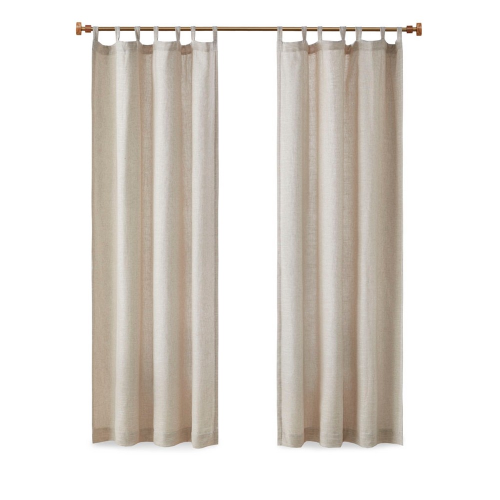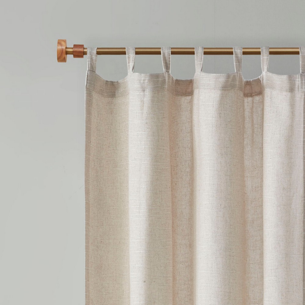 Beals Natural Faux Linen Tab Top Fleece Lined Curtain Panel