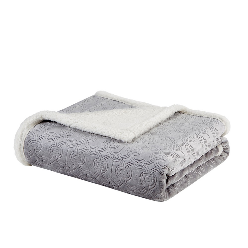 | Madison Park 60x70" 1 Throw: 60x70" Face: 3D embossed micro velour, 300gsm, 100% polyester; back: micro berber, 200gsm, 100% polyester Traditional Style Includes 1 Piece(s) MACHINE WASH COLD, GENTLE CYCLE, AND SEPARATELY. DO NOT BLEACH. TUMBLE DRY LOW, REMOVE PROMPTLY, DO NOT IRON. IF THERE IS NO FREE MOVEMENT IN THE WASHER OR DRYER, USE LARGE CAPACITY COMMERCIAL WASHER/DRYER. This super soft plush throw features a textured design that adds dimension to the throw. The reverse features a cozy berber to keep you warm. It's also oversized for added warmth and comfort. |