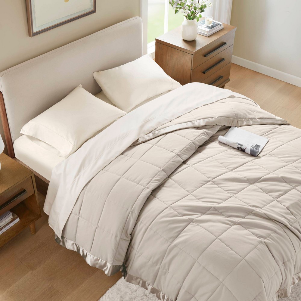 Windom Grey Lightweight Down Alternative Blanket with Satin Trim