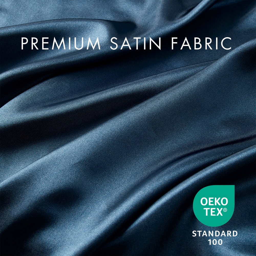 | Madison Park Essentials Queen 1 Flat Sheet: 90"W x 102"L 1 Fitted Sheet: 60"W x 80"L + 14"D 4 Standard Pillowcases: 20"W x 30"L (4) 100% polyester solid satin, 90 grams Casual Style Includes 6 Piece(s) Machine Washable Fall asleep in smooth and luxurious comfort with our wrinkle-free satin sheets. These satin sheets are gentle on your skin and hair, while helping reduce damage causing friction, making this set an essential for your beauty self-care routine. Also included are 2 additional pillowcases to complete your room into full luxury. These sheets are also OEKO-TEX certified, meaning they do not contain any harmful substances or chemicals, ensuring quality comfort and wellness. |