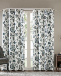 Camille Aqua Jacquard Printed Room Darkening Curtain Panel