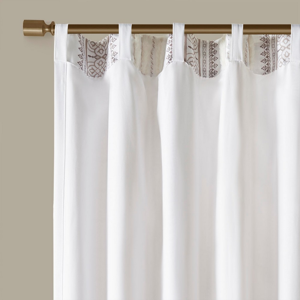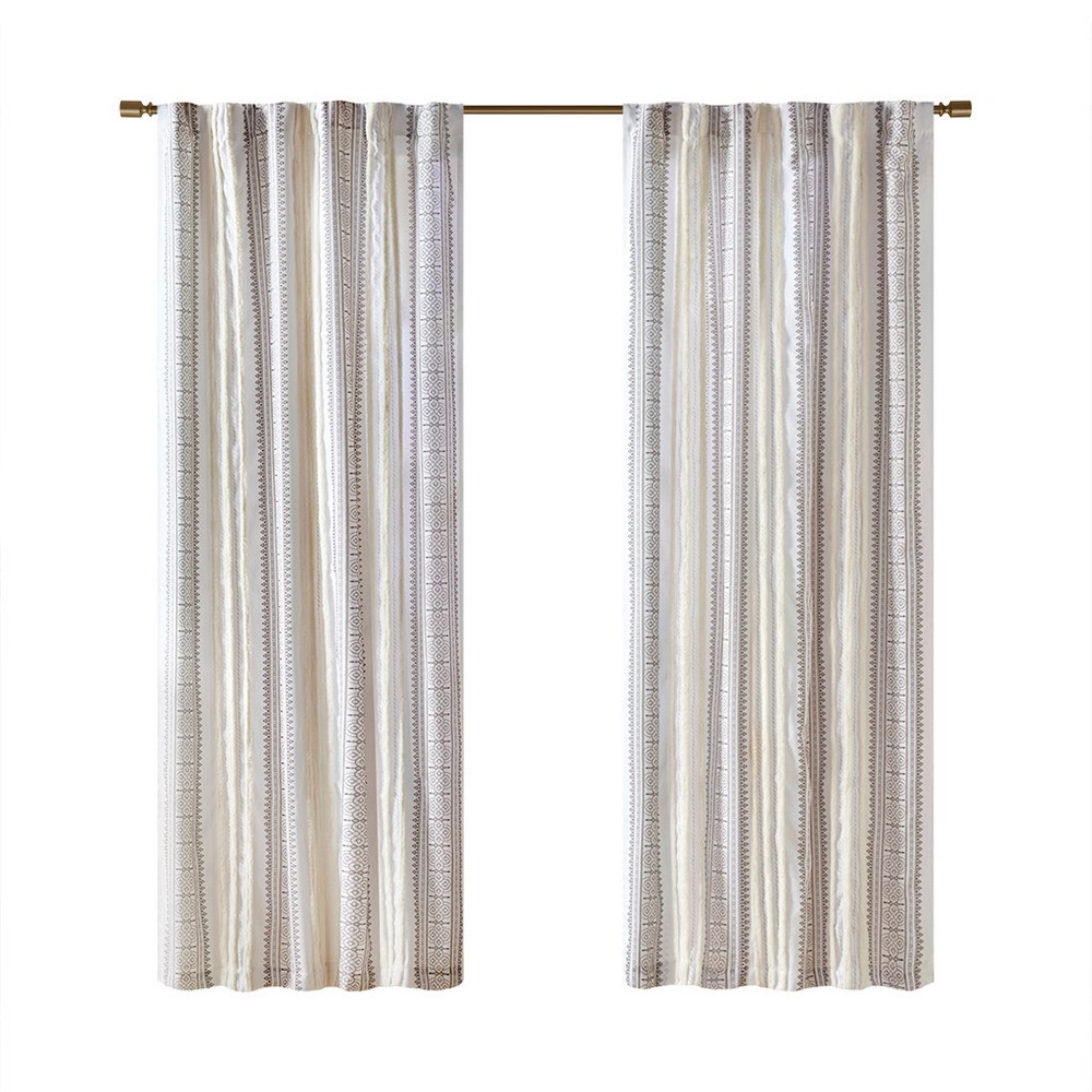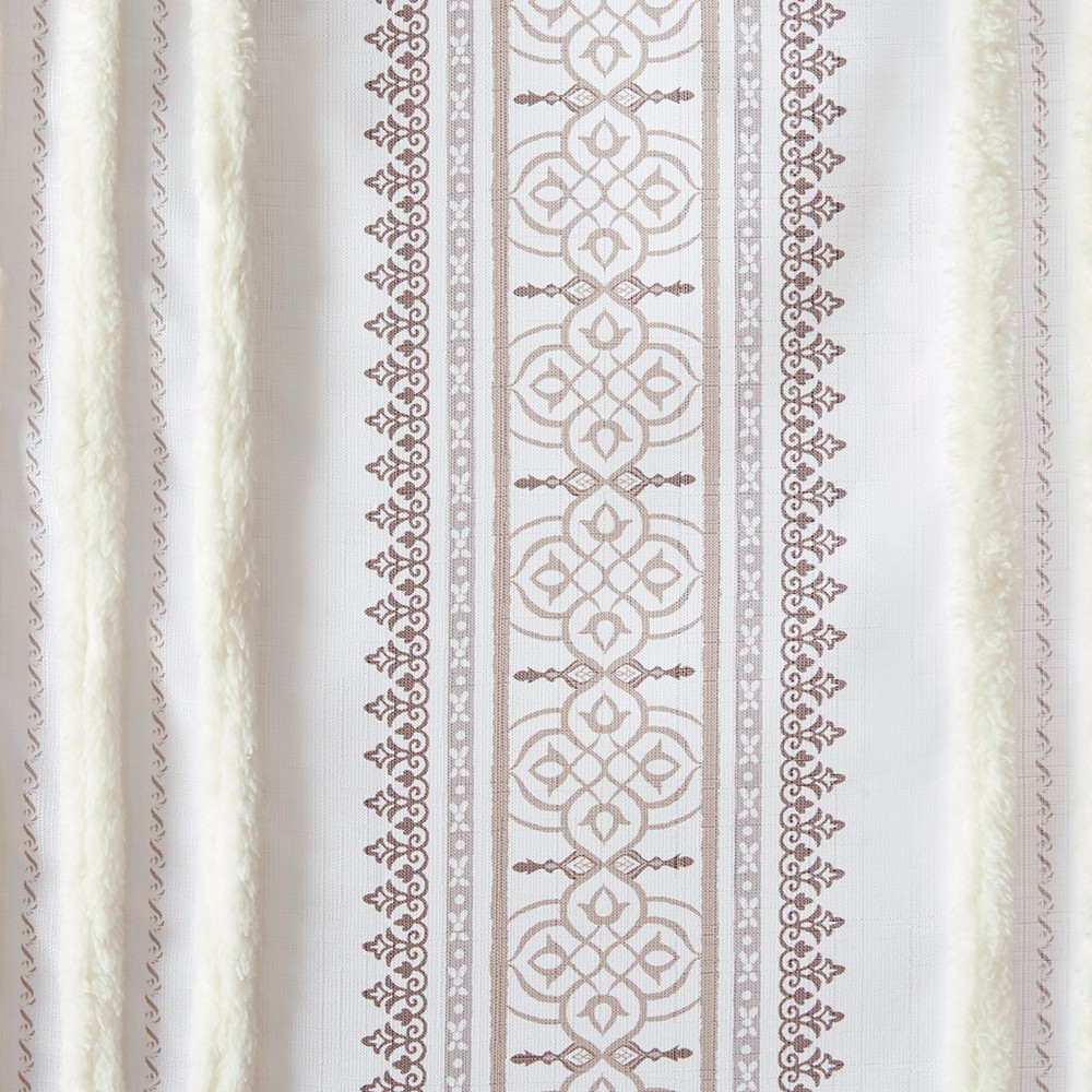 Samara White/Brown Poly Printed Curtain Panel with Tufted Stripe and Lining