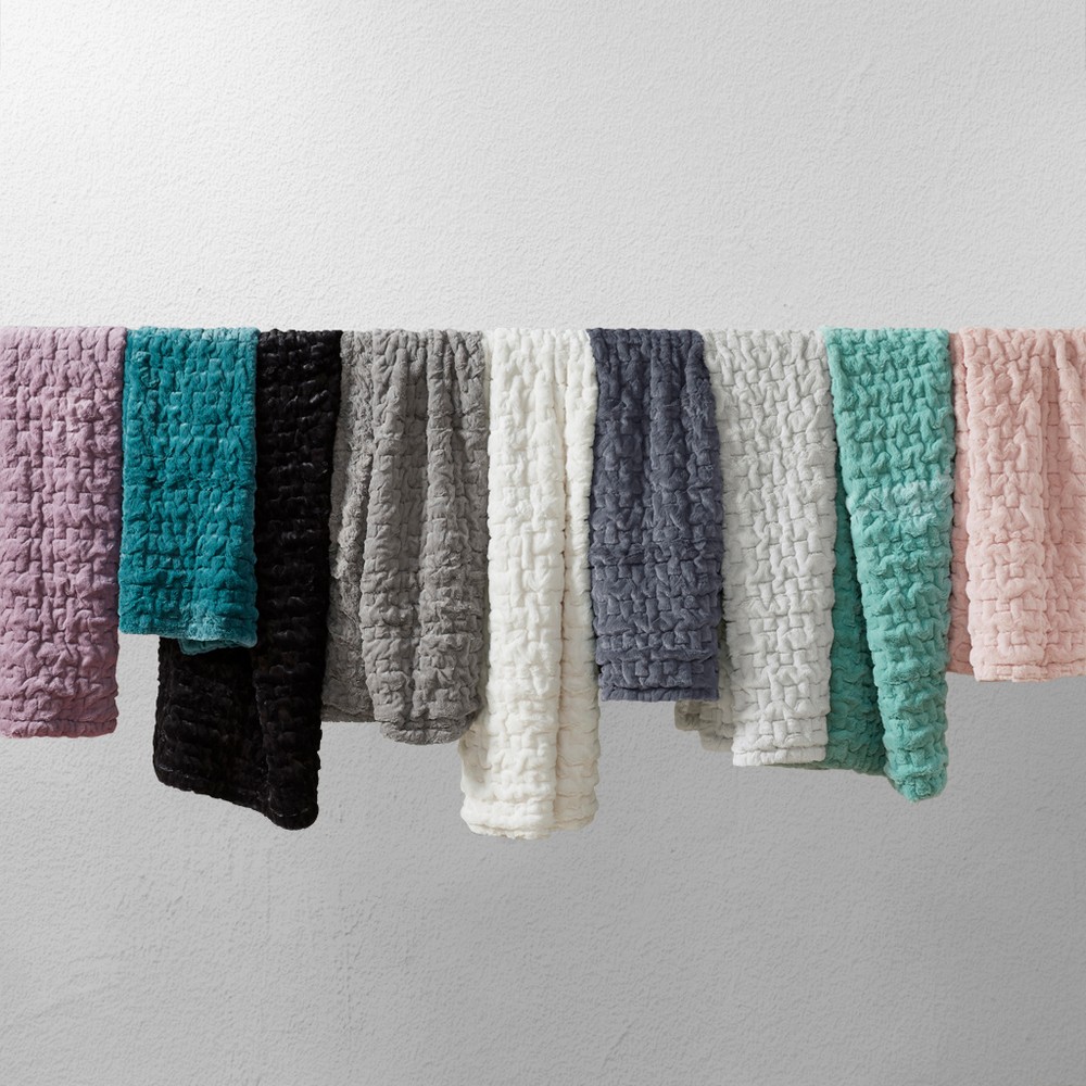 | Madison Park 50x60" 1 Throw: 50"W x 60"L Face: Solid Faux Fur, 100% Polyester Reverse: Solid Faux Mink, 100% Polyester Filling: 100% Polyfill Glam/Luxury Style Includes 1 Piece(s) Machine wash Add a modern and sophisticated touch to any space with the Madison Park Ruched Fur Throw. This throw features a solid ruched fur pattern, reversing to a faux mink to keep you warm and cozy. Machine washable for easy care, this throw is OEKO-TEX certified, meaning it does not contain any harmful substances or chemicals to ensure quality comfort and wellness. |