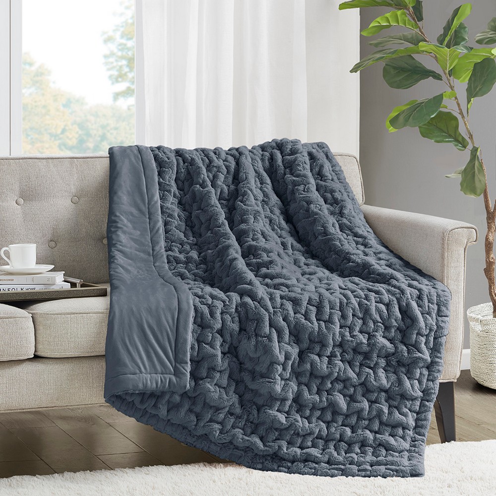 | Madison Park 50x60" 1 Throw: 50"W x 60"L Face: Solid Faux Fur, 100% Polyester Reverse: Solid Faux Mink, 100% Polyester Filling: 100% Polyfill Glam/Luxury Style Includes 1 Piece(s) Machine wash Add a modern and sophisticated touch to any space with the Madison Park Ruched Fur Throw. This throw features a solid ruched fur pattern, reversing to a faux mink to keep you warm and cozy. Machine washable for easy care, this throw is OEKO-TEX certified, meaning it does not contain any harmful substances or chemicals to ensure quality comfort and wellness. |