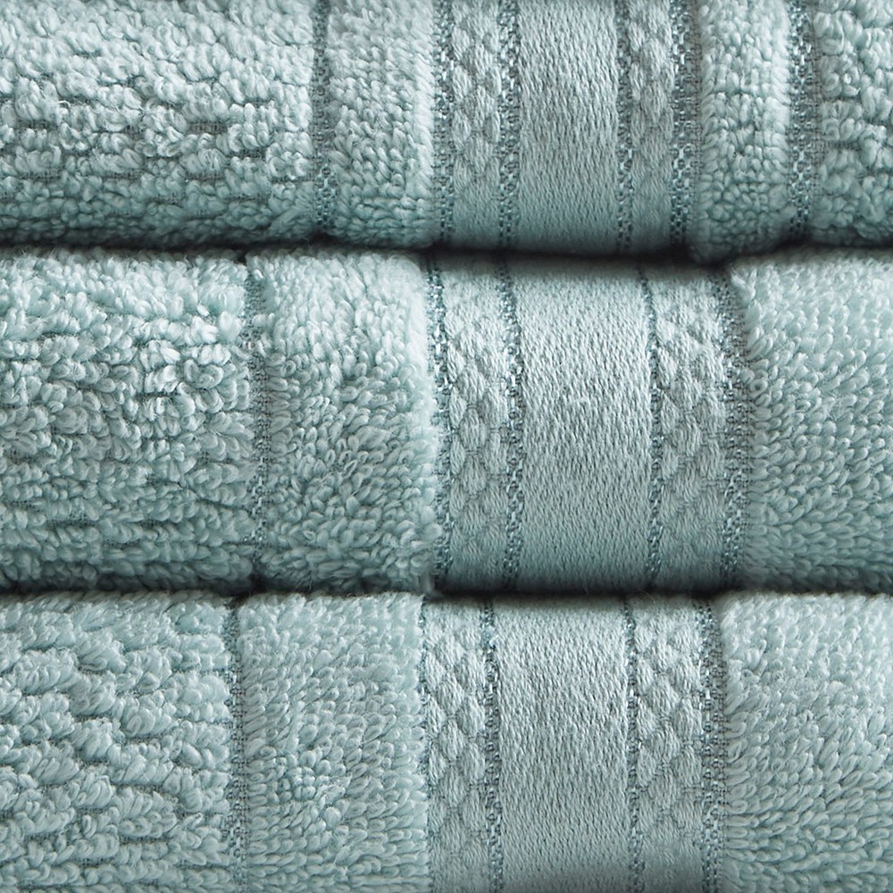 | Madison Park Essentials 6-Piece 2 Bath Towels: 27"W x 52"L (2) 2 Hand Towels: 16"W x 26"L (2) 2 Wash Towels: 12"W x 12" L (2) 100% cotton Casual Style Includes 6 Piece(s) Wash before first use. Machine wash cold on gentle cycle with like colors. Only use non-chlorine bleach when needed. Avoid contact with products containing benzoyl peroxide. Do not wash with sharp items that may pull the towel fibers, such as zippers or hooks. To maintain the quality and performance of your towels, avoid the use of fabric softeners and dry sheets. Tumble dry low, remove promptly. Do not iron. Before use, simply shake towels to restore fluff and pile. Our Madison Park Essentials Adrien Super Soft 6 Piece Cotton Towel Set introduces a simple and stylish update to your bathroom. This light weight performance cotton towel set features a zero twist construction making it incredibly soft and durable, while highly absorbent and quick drying at the same time. Bringing the best in health and wellness, these towels are also MADE IN GREEN by OEKO-TEX certified, meaning they do not include any harmful substances or chemicals while also using sustainable processes and socially responsible working conditions, for the best in quality comfort and wellness. In addition, each towel also features a silvadur antimicrobial treatment which provides built in freshness protection, inhibits growth of odor causing bacteria, and keeps linen newer, longer. Active for multiple washes, this treatment delivers long-lasting durable odor protection performance. Machine washable for easy care. Set includes: 2 bath (27x52), 2 hand (16x26), and 2 wash (12x12) towels. |