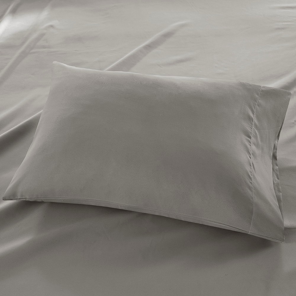 | Madison Park Queen 1 Flat Sheet: 90x102" 2 Pillowcases: 20x30" (2) 1 Fitted Sheet: 60x80+16" 100% polyester, 120gsm microcell, with 3M Moisture Management Treatment Casual Style Includes 1 Piece(s) MACHINE WASH COLD, GENTLE CYCLE, AND SEPARATELY. DO NOT BLEACH. TUMBLE DRY LOW, REMOVE PROMPTLY. DO NOT IRON. IF THERE IS NO FREE MOVEMENT IN THE WASHER OR DRYER, USE LARGE CAPACITY COMMERCIAL WASHER/DRYER. Wrap yourself in a cool and comfortable sleep with this moisture wicking luxurious brushed microfiber sheet set. This soft and lightweight sheet set features 3M Scotchgard moisture treatment that wicks away moisture to keep you cool. Fade and stain resistant, this deep pocket sheet set lasts wash after wash and is easy to clean. Our sheets go through a very light brushing process that gives them an incredible soft feel against your skin. These sheets are also OEKO-TEX certified, meaning they do not contain any harmful substances or chemicals, ensuring quality comfort and wellness. |