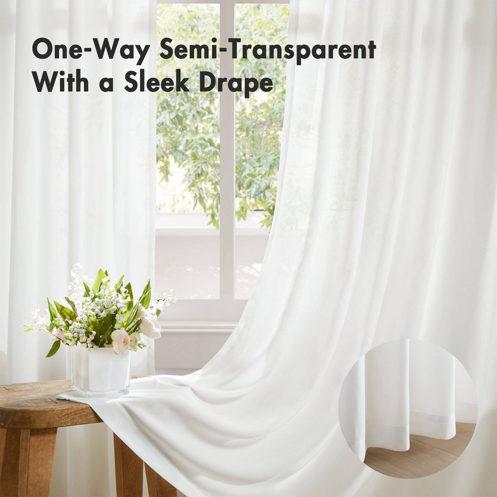 | Madison Park 52x120" 2 Window Panels: 52"W x 120"L (2) 100% Polyester Modern/Contemporary Style Includes 2 Piece(s) Machine washable for easy care Keep your room vibrant while maintaining total privacy with our semi-transparent transitional window curtains. Crafted from silky smooth, non-see-through fabric, these lightweight curtains allow for an optimal amount of natural daylight while blocking any outside visibility at night, fostering a tranquil atmosphere for your home at all times. Offering a soft light filter during the day that obscures your place from prying eyes, these curtains impress with their smooth texture and ability to evoke a cozy, inviting environment compared to traditional sheers. |