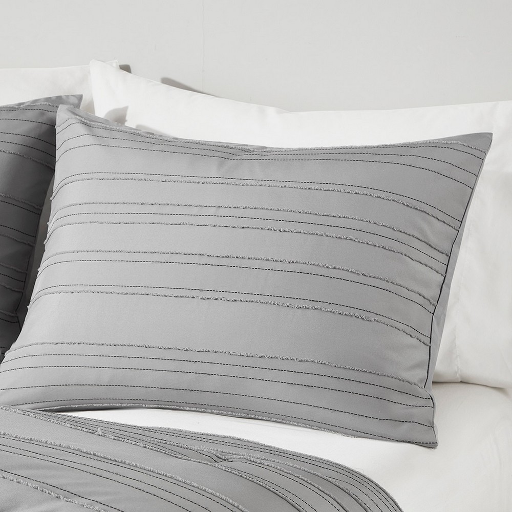 Oliver Gray Cationic Dyed Clip Jacquard Duvet Cover Set with Throw Pillow Twin