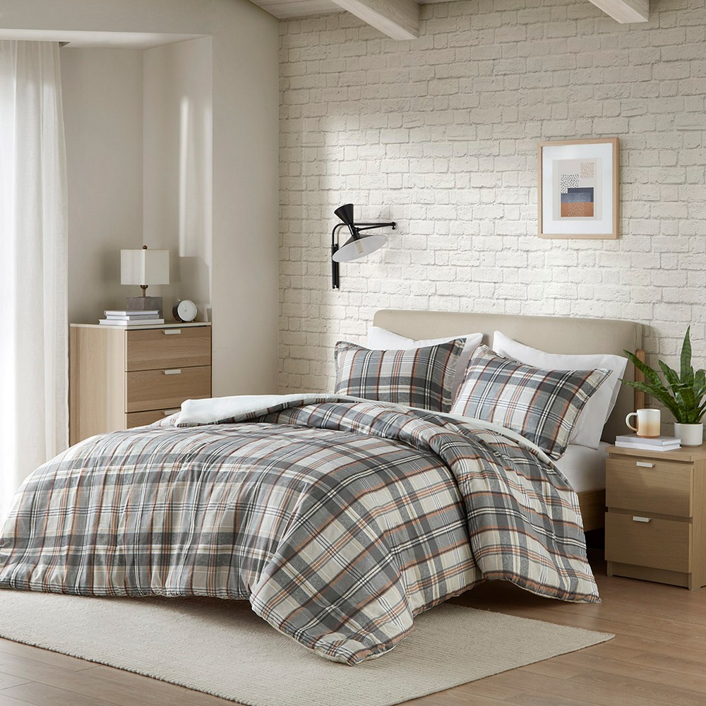 Blake Tan/Gray Plaid Duvet Cover Set Queen