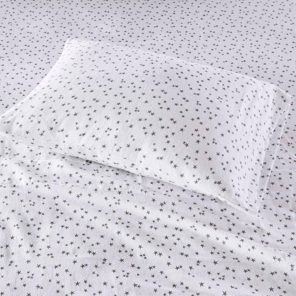 | Intelligent Design Full 1 Flat Sheet: 81"W x 96"L 1 Fitted Sheet: 54"W x 75"L + 12"D 2 Standard Pillowcases: 20"W x 30"L (2) 100% Cotton printed flannel Casual Style Includes 4 Piece(s) Machine Washable This warm cotton flannel sheet set features a fun novelty print to create a cute look with a comfortable feel. These sheets are also OEKO-TEX certified, meaning they do not contain any harmful substances or chemicals, ensuring quality comfort and wellness. Machine washable for easy care, this sheet set is perfect for keeping you warm and cozy through the night, while adding a delightful touch to your bedroom decor. Set includes: 1 Flat Sheet, 1 Fitted Sheet, and 2 Pillowcases (1 in Twin/TwinXL sizes). |
