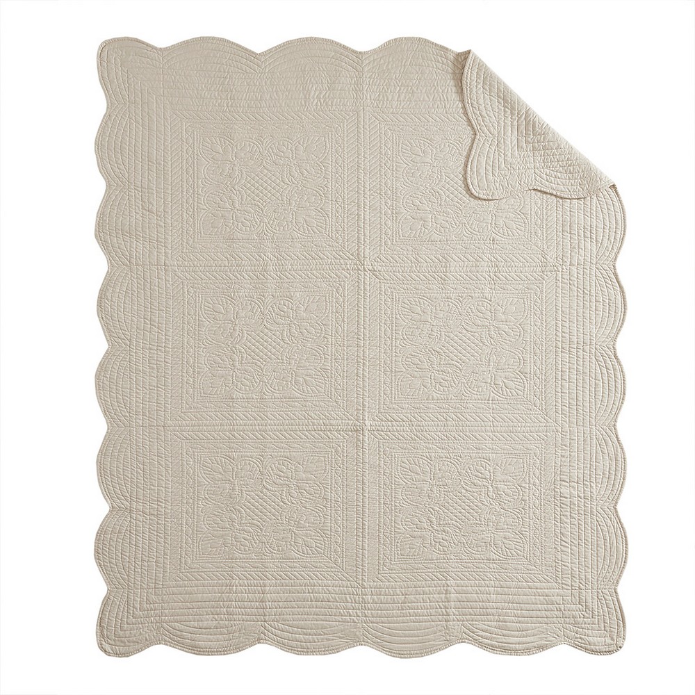 Tuscany Cream Oversized Quilted Throw with Scalloped Edges