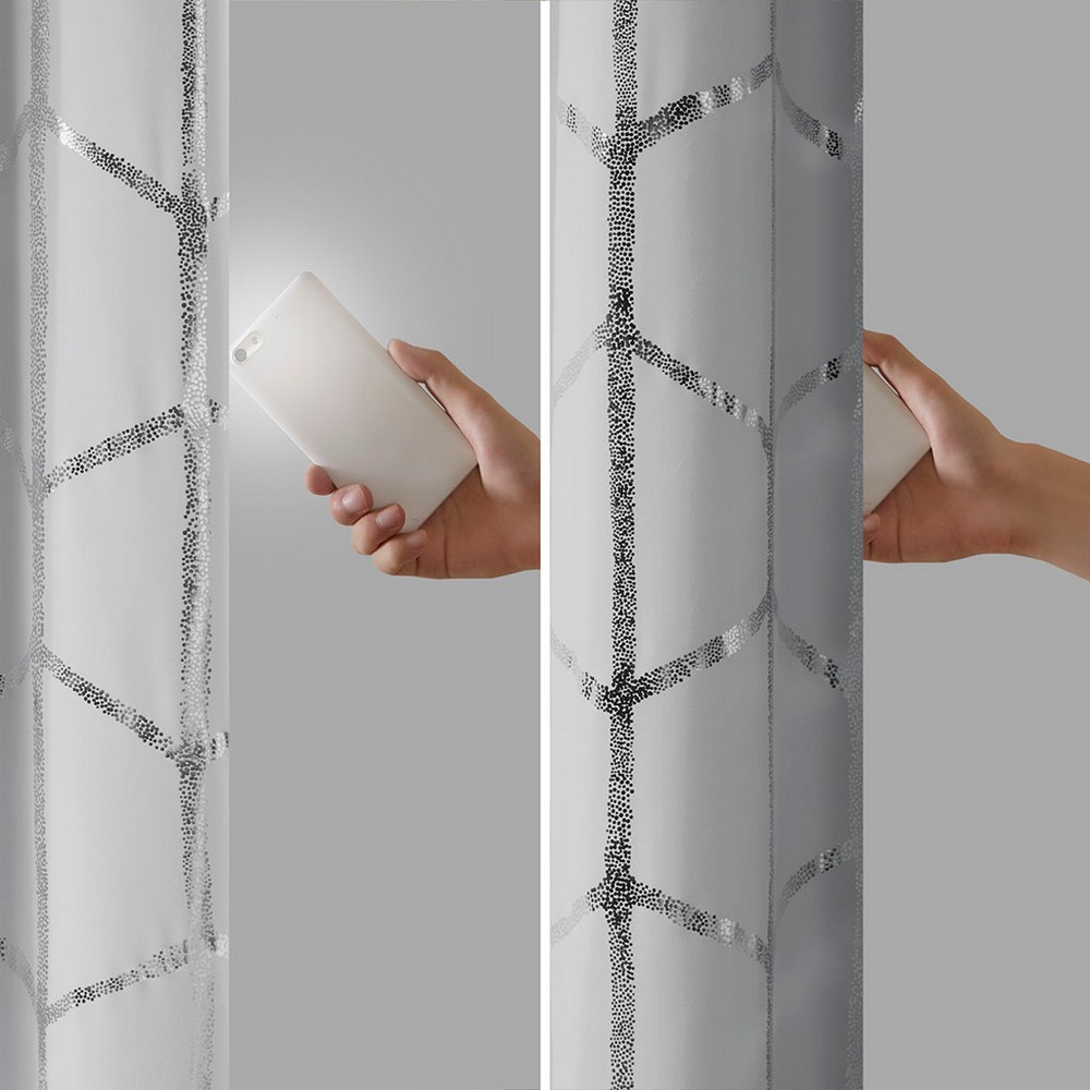 | Intelligent Design 50x63" 1 Window Panel: 50"W x 63"L microfiber with 3pass liner Casual Style Includes 1 Piece(s) Machine wash cold, gently and separately, do not bleach, tumble dry low, romove promptly, do not iron Freshen up your space with the enchanting style of Intelligent Design Raina Window Panel. The stunning panel flaunts a geometric, metallic silver print against a light grey ground for a fun and eye-catching look! Finished with a heavy 3 pass foamback liner, this panel is 100% total blackout providing energy efficiency and added privacy. Grommet top makes this panel easy to hang, open, and close through the day. Machine washable for easy care; complete the collection with coordinating bedding and shower curtain sold separately. |