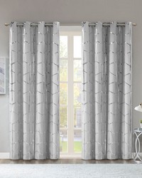 Raina Grey/Silver Total Blackout Metallic Print Grommet Top Curtain Panel