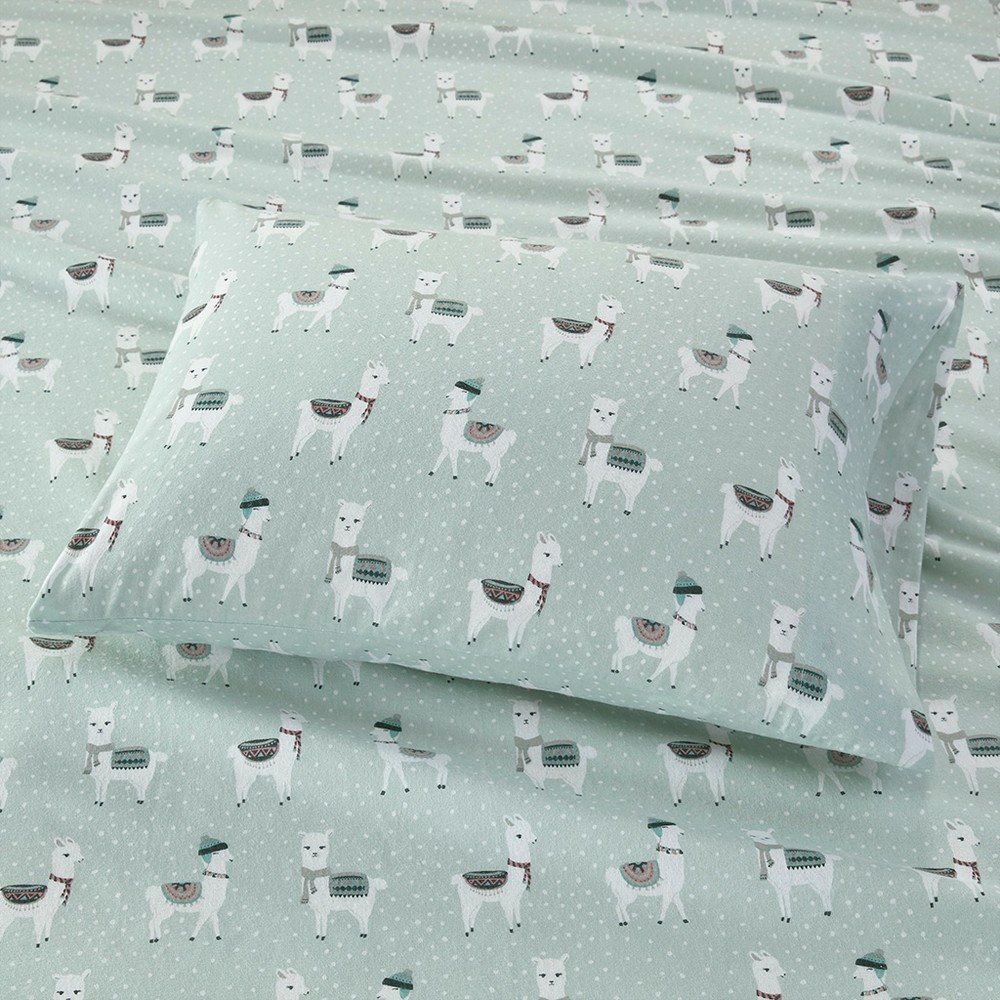 Cozy Flannel Seafoam Llama Full