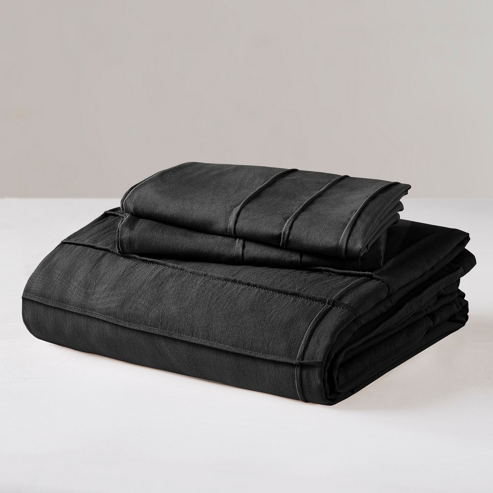 Porter Black Soft Washed Pleated Duvet Cover Set Queen