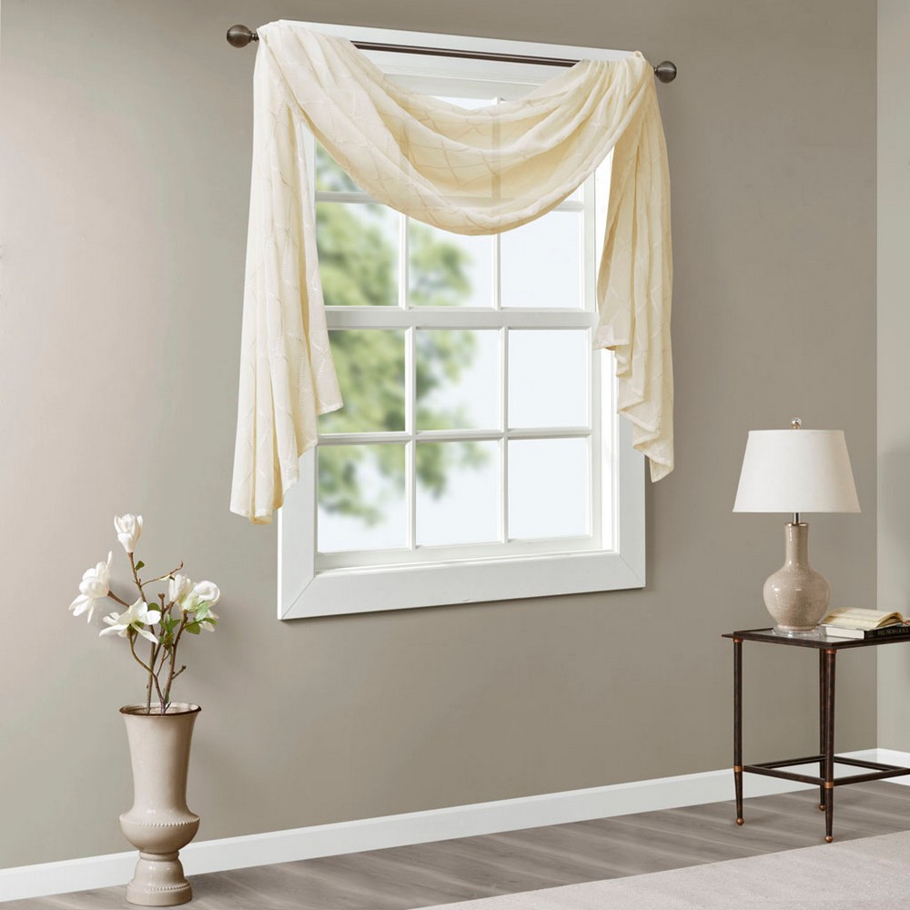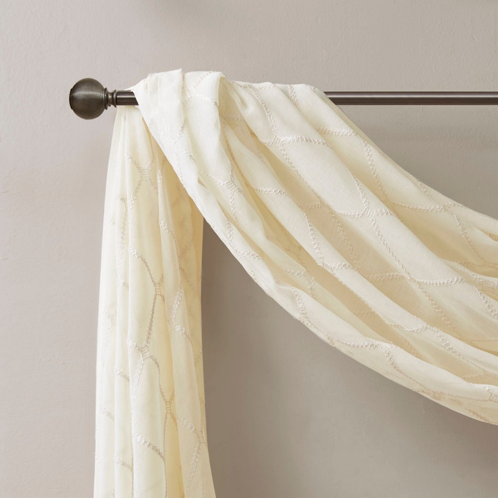 Irina Ivory Diamond Sheer Embroidered Window Scarf