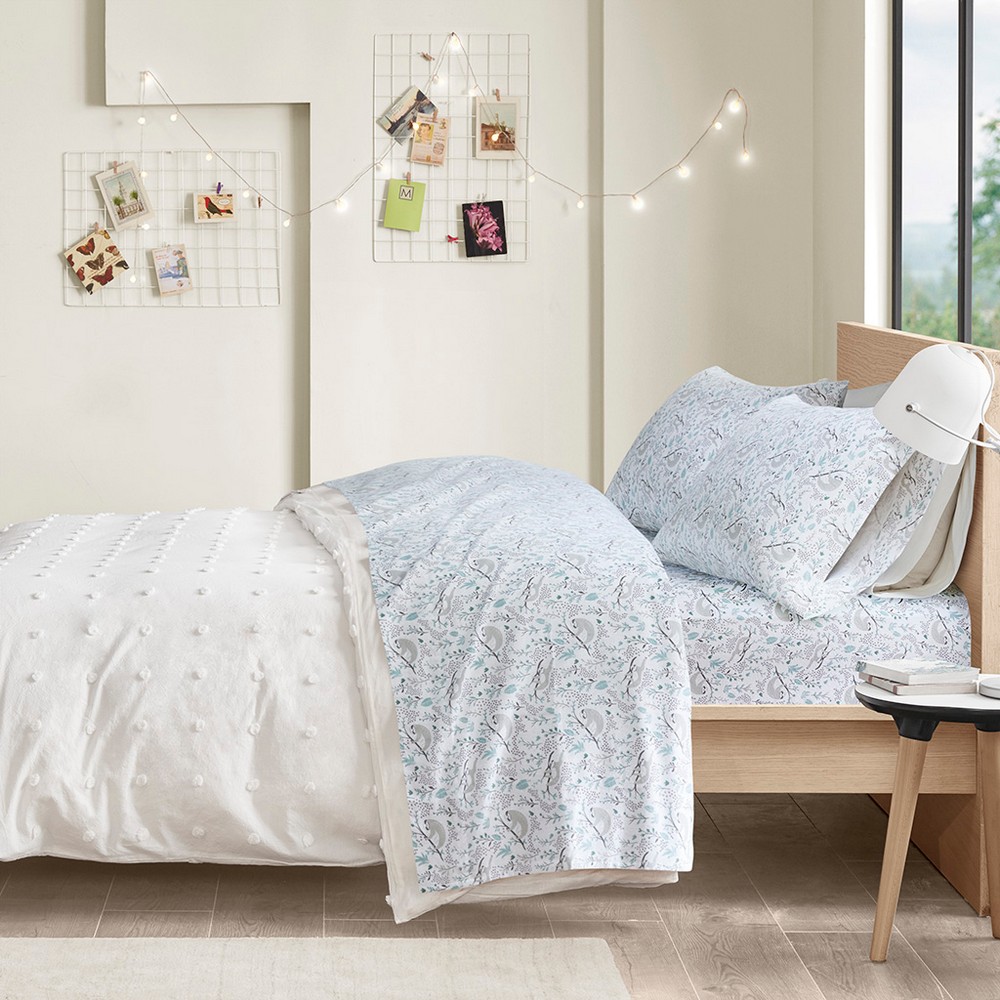 | Intelligent Design Queen 1 Flat Sheet: 90"W x 102"L 1 Fitted Sheet: 60"W x 80"L + 14"D 2 Standard Pillowcases: 20"W x 30"L (2) 100% Cotton printed flannel Casual Style Includes 4 Piece(s) Machine Washable This warm cotton flannel sheet set features a fun novelty print to create a cute look with a comfortable feel. These sheets are also OEKO-TEX certified, meaning they do not contain any harmful substances or chemicals, ensuring quality comfort and wellness. Machine washable for easy care, this sheet set is perfect for keeping you warm and cozy through the night, while adding a delightful touch to your bedroom decor. Set includes: 1 Flat Sheet, 1 Fitted Sheet, and 2 Pillowcases (1 in Twin/TwinXL sizes). |