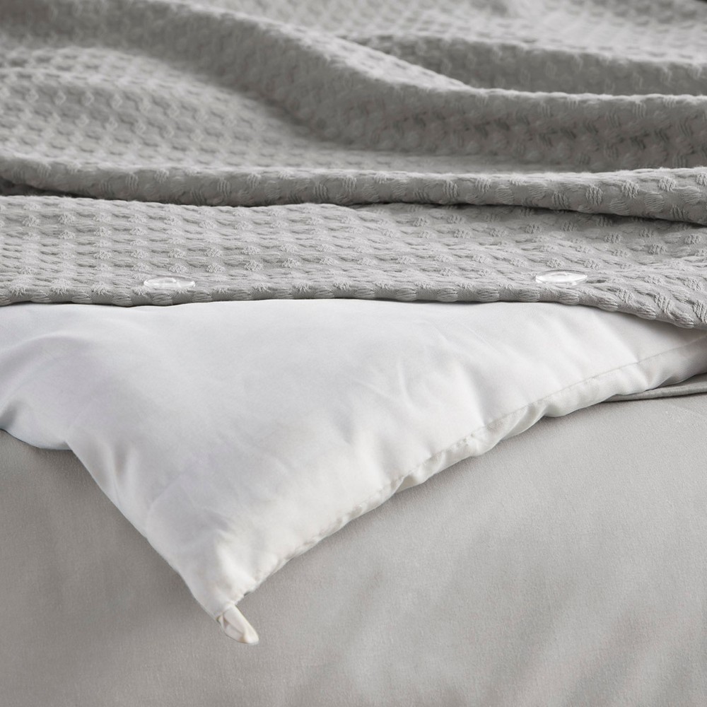 Mina Light Grey Waffle Weave Textured Comforter Set Twin