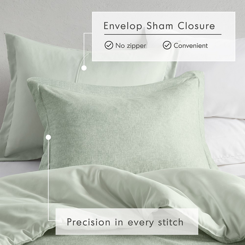 Camden Sage Green Chambray Print Solid Comforter Set Queen