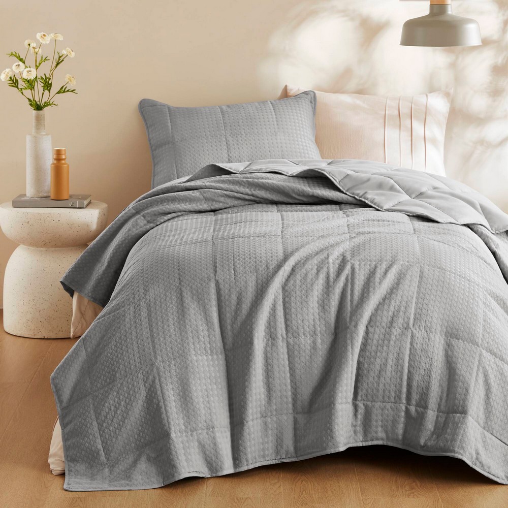 Quilt/Sham; 100% polyester waffle woven face, polyester fill. 8"quilting grid size