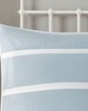 | Harbor House Euro Sham 1 Euro Sham: 26"W x 26"L face and back: 100% cotton fabric, Lining: 100% cotton Coastal/Nautical Style Includes 1 Piece(s) Machine Wash, gentle cycle, and separately. Do not bleach. Tumble Dry Low, remove promptly, low iron if needed. If there is no free movement in the washer or dryer, use large capacity commercial washer/dryer. The Harbor House Crystal Beach Euro Sham offers a refreshing accent piece to your bed. This cotton Euro sham features embroidered white striping across the soft blue fabric, creating a charming coastal allure. The grey fabric edge complements the design of the Euro sham to complete the seaside look. Machine washable for easy care, there is one 26x26 inch Euro Sham in each package and it is an accessory to the Crystal Beach bedding collection. |