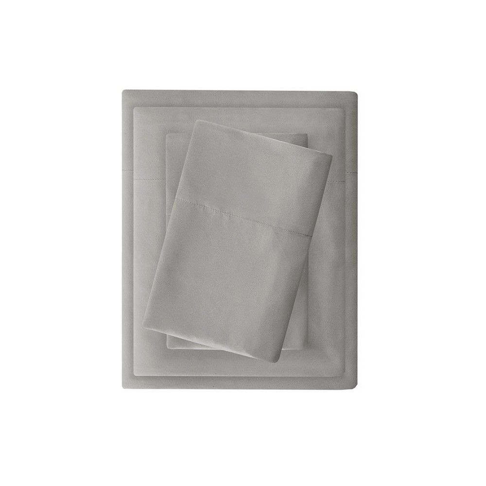 | Madison Park King 1 Fitted Sheet: 78x80+16" 2 Pillowcases: 20x40" 3(2) 1 Flat Sheet: 108x102" 100% polyester, 120gsm microcell, with 3M Moisture Management Treatment Casual Style Includes 1 Piece(s) MACHINE WASH COLD, GENTLE CYCLE, AND SEPARATELY. DO NOT BLEACH. TUMBLE DRY LOW, REMOVE PROMPTLY. DO NOT IRON. IF THERE IS NO FREE MOVEMENT IN THE WASHER OR DRYER, USE LARGE CAPACITY COMMERCIAL WASHER/DRYER. Wrap yourself in a cool and comfortable sleep with this moisture wicking luxurious brushed microfiber sheet set. This soft and lightweight sheet set features 3M Scotchgard moisture treatment that wicks away moisture to keep you cool. Fade and stain resistant, this deep pocket sheet set lasts wash after wash and is easy to clean. Our sheets go through a very light brushing process that gives them an incredible soft feel against your skin. These sheets are also OEKO-TEX certified, meaning they do not contain any harmful substances or chemicals, ensuring quality comfort and wellness. |