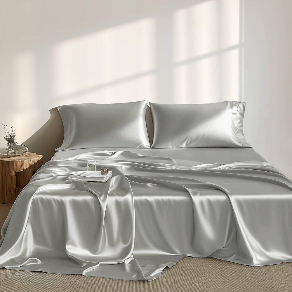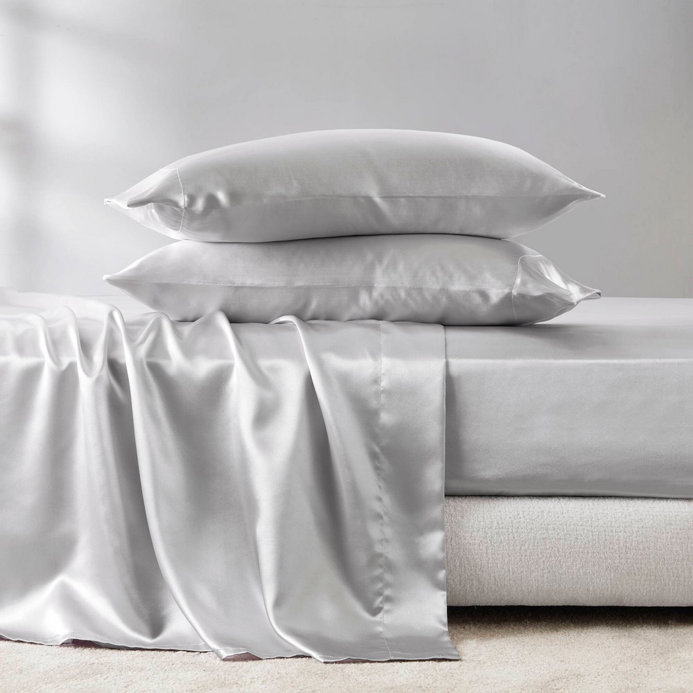 | Madison Park Essentials King 1 Flat Sheet: 108"W x 102"L 1 Fitted Sheet: 78"W x 80"L + 14"D 4 King Pillowcases: 20"W x 40"L (4) 100% polyester solid satin, 90 grams Casual Style Includes 6 Piece(s) Machine Washable Fall asleep in smooth and luxurious comfort with our wrinkle-free satin sheets. These satin sheets are gentle on your skin and hair, while helping reduce damage causing friction, making this set an essential for your beauty self-care routine. Also included are 2 additional pillowcases to complete your room into full luxury. These sheets are also OEKO-TEX certified, meaning they do not contain any harmful substances or chemicals, ensuring quality comfort and wellness. |