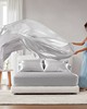 | Madison Park Essentials Cal King 1 Flat Sheet: 108"W x 102"L 1 Fitted Sheet: 72"W x 84"L + 14"D 4 King Pillowcases: 20"W x 40"L (4) 100% polyester solid satin, 90 grams Casual Style Includes 6 Piece(s) Machine Washable Fall asleep in smooth and luxurious comfort with our wrinkle-free satin sheets. These satin sheets are gentle on your skin and hair, while helping reduce damage causing friction, making this set an essential for your beauty self-care routine. Also included are 2 additional pillowcases to complete your room into full luxury. These sheets are also OEKO-TEX certified, meaning they do not contain any harmful substances or chemicals, ensuring quality comfort and wellness. |