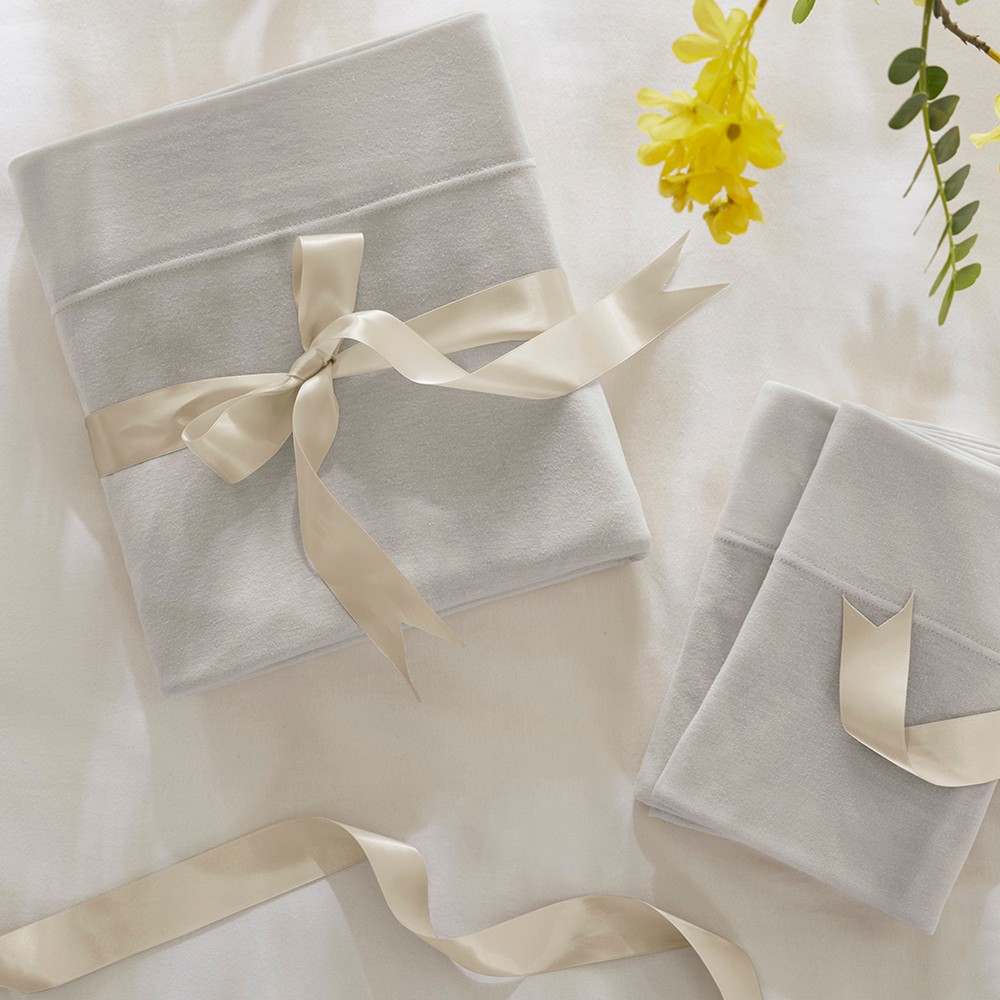 | Intelligent Design Full 1 Flat Sheet: 81"W x 96"L 1 Fitted Sheet: 54"W x 76"L+14"D 2 Standard Pillowcases: 20"W x 30"L (2) 50% Cotton 50% polyester jersey knit fabric Casual Style Includes 4 Piece(s) Machine Washable The all season jersey knit cotton blend sheet set is as comfortable as sleeping on your favorite tee. Unlike woven sheet set, this knit sheet set is easier to get into bed during cold weather or absorbent for summer. Choose from a variety of colors for comfort and style in your bedroom. Set includes 1 flat sheet, 1 fitted sheet and 2 pillowcases (1 in Twin size). Machine wash and tumble dry on low to prevent shrinkage. Fitted sheet fits up to 16 inches of mattress. |