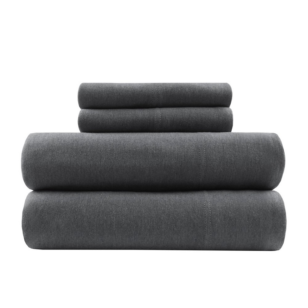 The all season jersey knit cotton blend sheet set is as comfortable as sleeping on your favorite tee. Unlike woven sheet set, this knit sheet set is easier to get into bed during cold weather or absorbent for summer. Choose from a variety of colors for comfort and style in your bedroom. Set includes 1 flat sheet, 1 fitted sheet and 2 pillowcases (1 in Twin size). Machine wash and tumble dry on low to prevent shrinkage. Fitted sheet fits up to 16 inches of mattress.