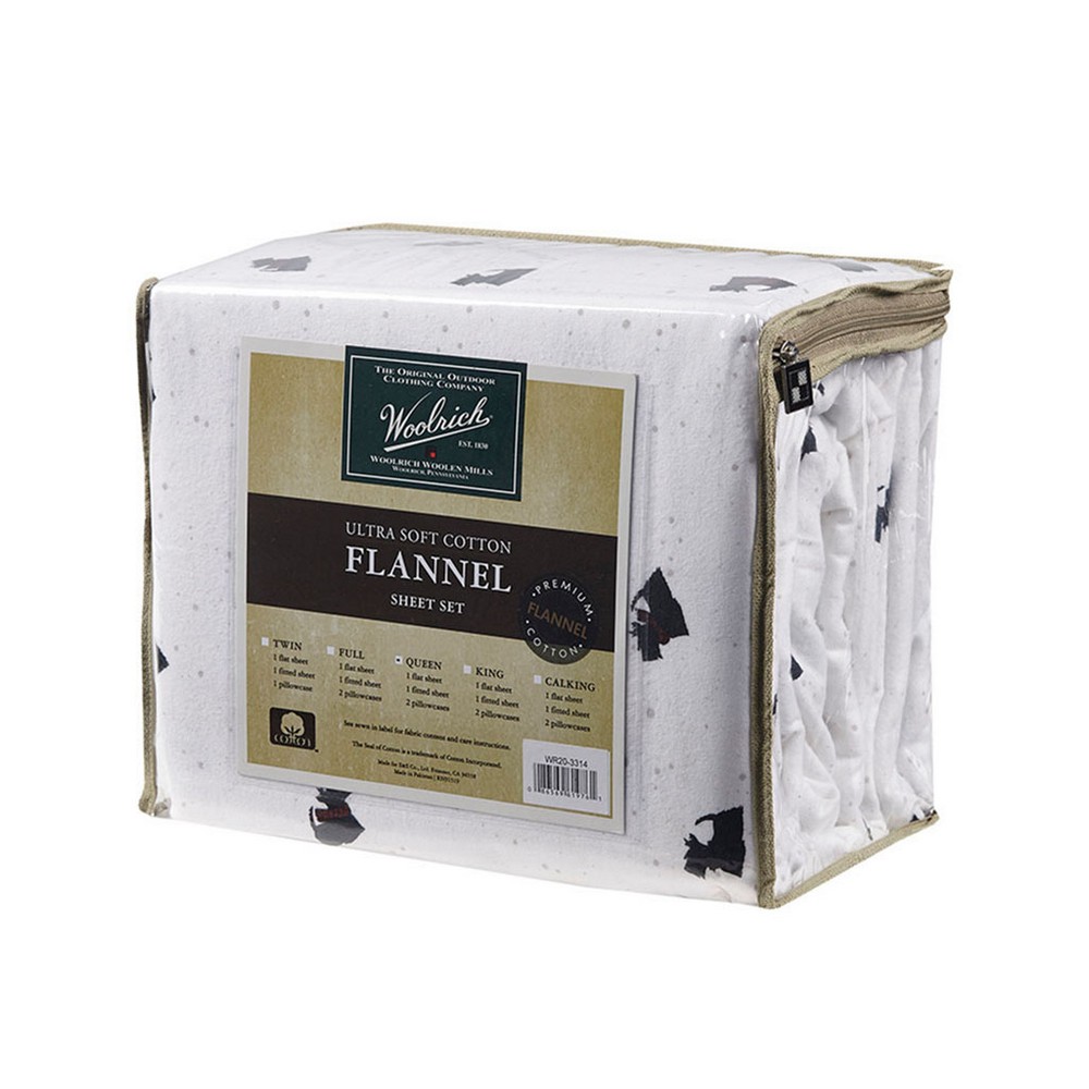 | Woolrich Full 1 Flat Sheet: 81"W x 96"L 1 Fitted Sheet: 54"W x 75"L + 12"D 2 Standard Pillowcases: 20"W x 30"L(2) 100% cotton flannel Rustic/Lodge/Cabin Style Includes 1 Piece(s) Machine wash cold, gentle cycle, and separately. Do not bleach. Tumble dry low, remove promptly. Iron on medium temperature. If there is no free movement in the washer or dryer, use large capacity commercial washer/dryer. Stay warm and cozy through the night with this incredibly soft cotton flannel sheet set. Featuring fun novelty and classic prints, to give you a comfy update to your bedroom. Machine washable for easy care, this sheet set creates a comfortable cabin aesthetic in your bedroom. These sheets are also OEKO-TEX certified, meaning they do not contain any harmful substances or chemicals, ensuring quality comfort and wellness. Set includes: 1 Flat Sheet, 1 Fitted Sheet, and 2 Pillowcases (1 in Twin/TXL sizes). |