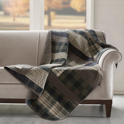 The Woolrich Winter Plains quilted throw features plaid pieced stripes in shades of brown and tan and reverses to a solid brown color. Made from 100% cotton, this throw is soft to the touch and can be used year round.