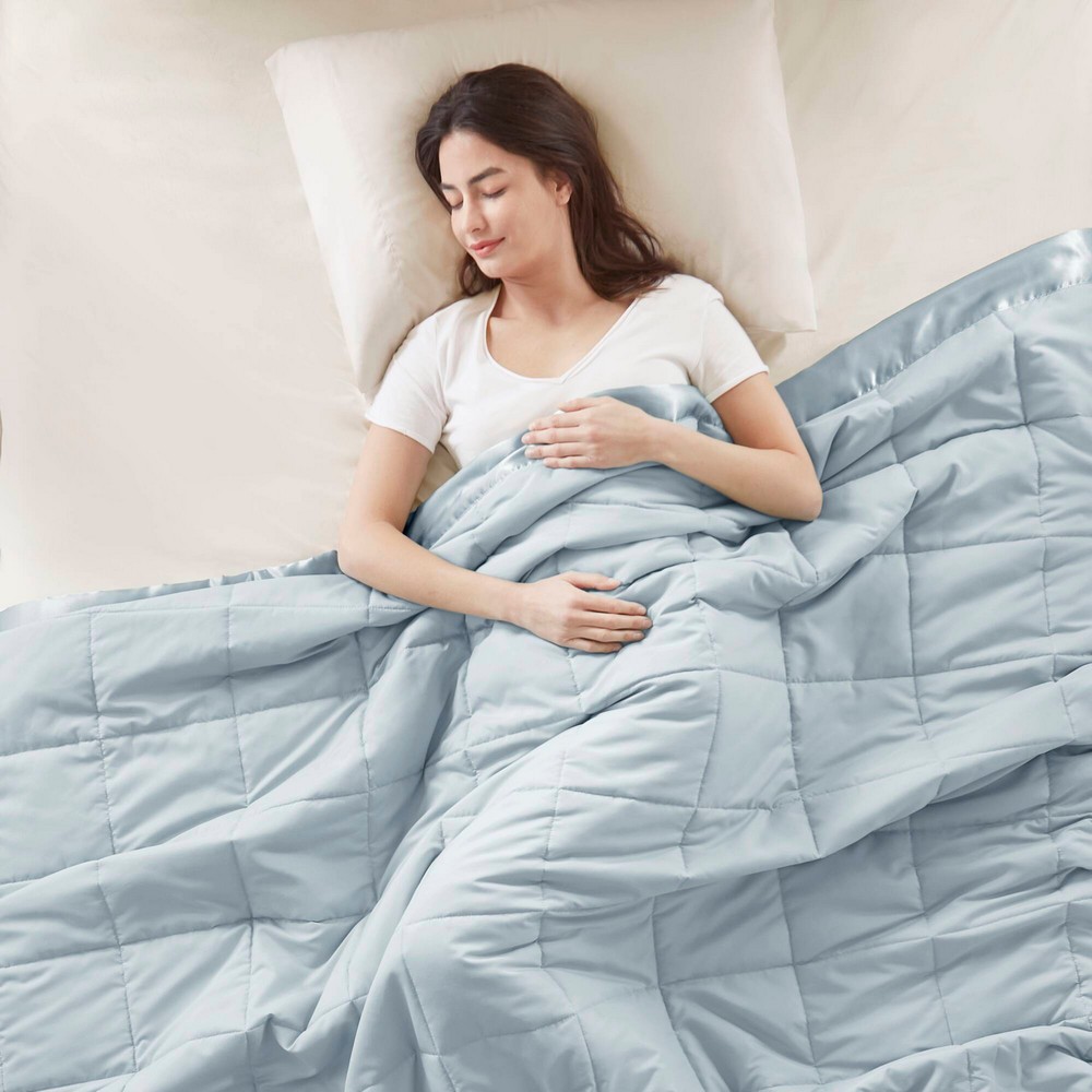 Windom Blue Lightweight Down Alternative Blanket with Satin Trim