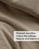 | Duvet/sham: Washed microfiber with pintuck pleats on face, solid microfiber reverse. |