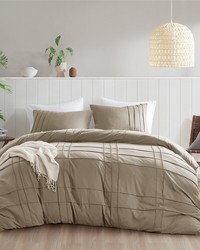Porter Khaki Soft Washed Pleated Duvet Cover Set King