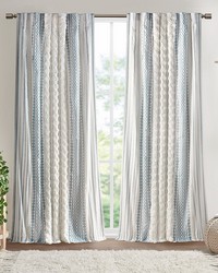 The INK+IVY Imani Cotton Printed Window Panel with Chenille Stripe and Lining offers a chic and casual update to your home. This white window panel features a navy geometric print with a tufted chenille stripe trim, for a textured artisanal look and feel. A lightweight white cotton lining on the reverse softly filters light, while providing better drapability and added privacy. In addtition, this 100% cotton curtain panel is also OEKO-TEX certified, meaning it does not contain any harmful substances or chemicals for the best in quality comfort and wellness. Each panel is finished with a rod pocket top for easy hanging, and back tabs for a more clean and tailored finish. This window panel is sold as a single and 2 window panels must be purchased to cover any standard size window. Complete the look with coordinating bedding sets and bath decor, available and sold separately.