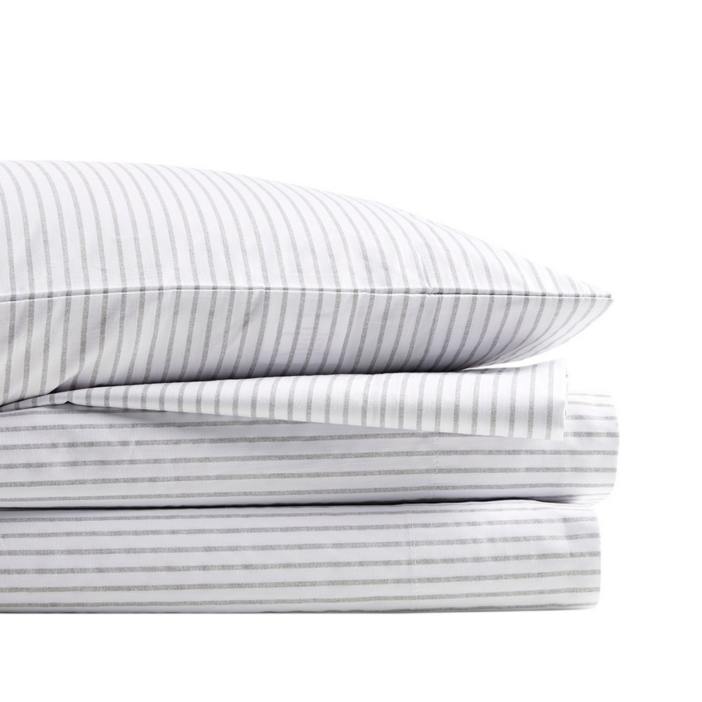 200 Thread Count Printed Cotton Grey Stripe Queen