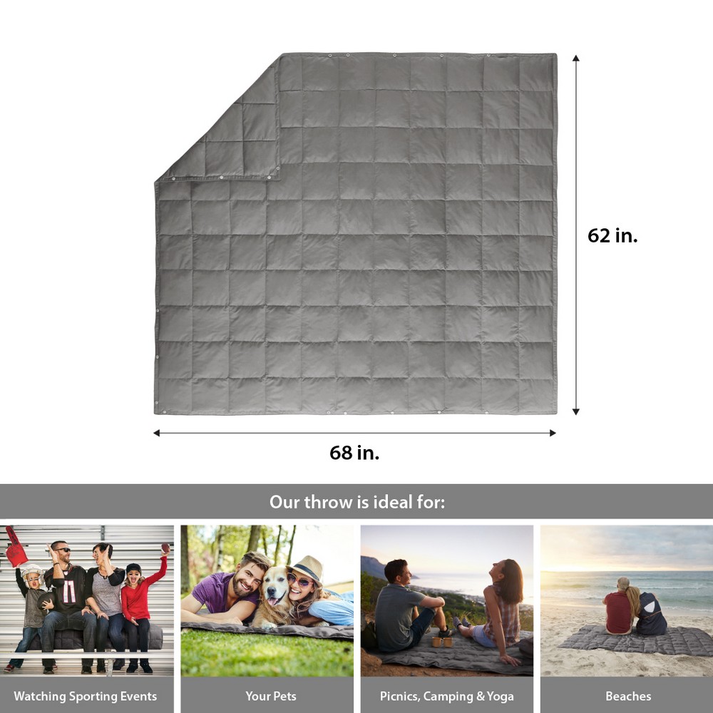 True North by Sleep Philosophy provides the perfect way to stay warm and cozy with the Hadly Wearable Multipurpose Throw. Made with water repellent fabric, this wearable throw uses soft goose feathers and down filling to keep you warm and dry. The button-down style makes this throw easy to wear outside the home and is complemented by classic box quilting to create a chic casual look. With its heavy filling, this oversized wearable throw includes self bag packaging making it perfect for camping, outside sporting events, the beach, etc. The wearable throw is also OEKO-TEX certified, meaning it does not contain any harmful substances or chemicals to ensure quality comfort and wellness. Machine washable for easy care.