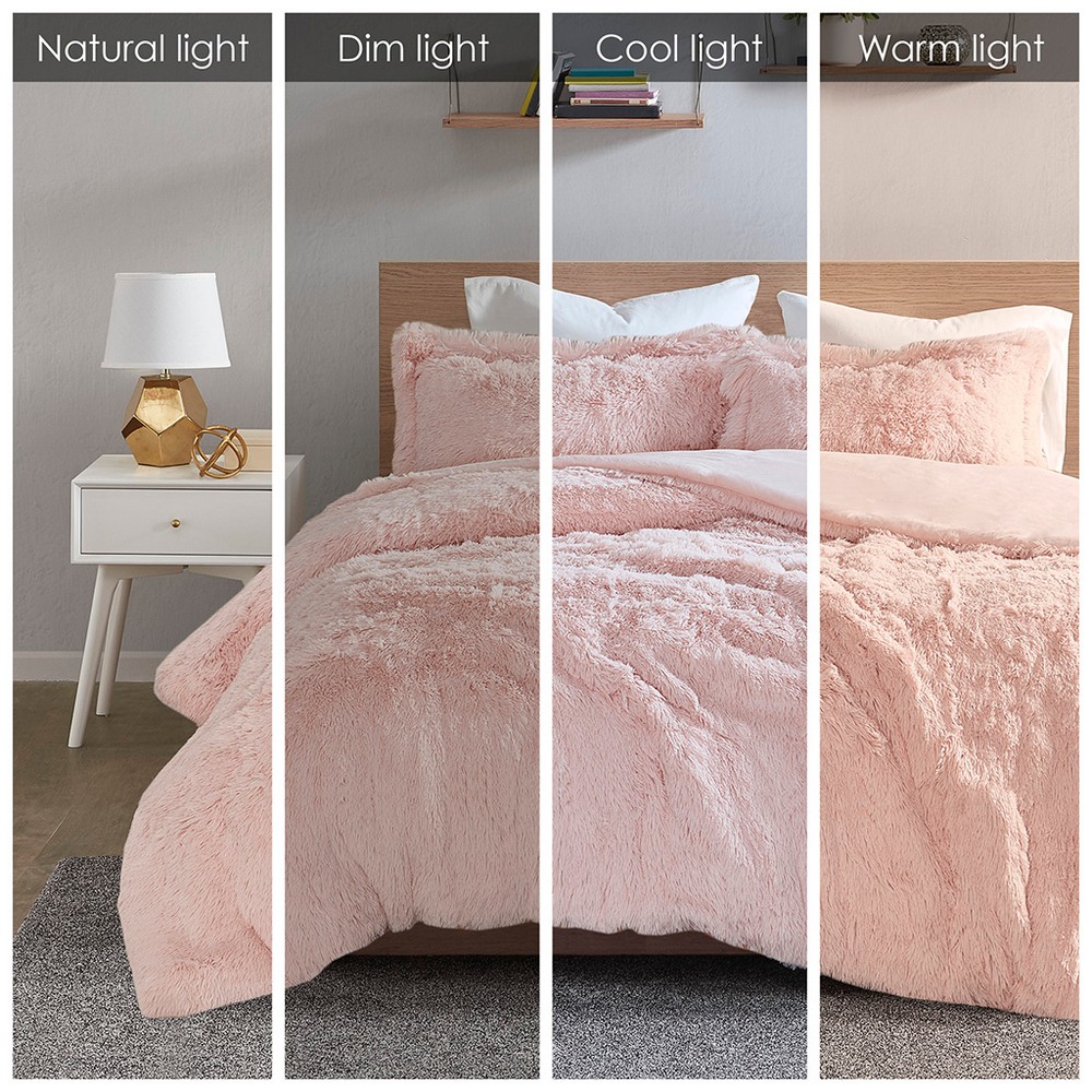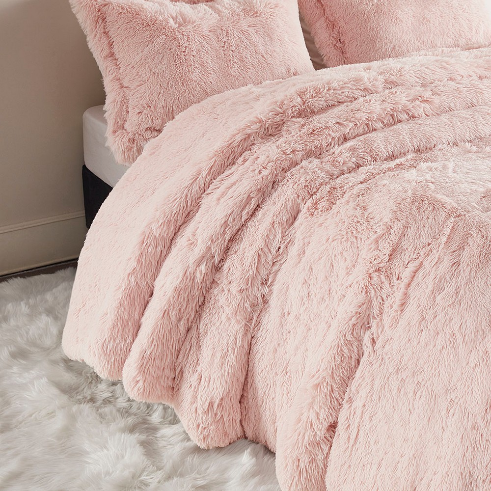 Malea Blush Shaggy Fur Duvet Cover Set Twin