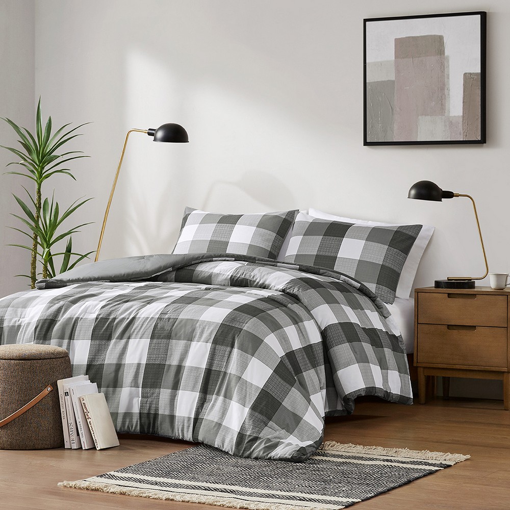 Jonah Charcoal Grey Plaid Check Printed Comforter Set King