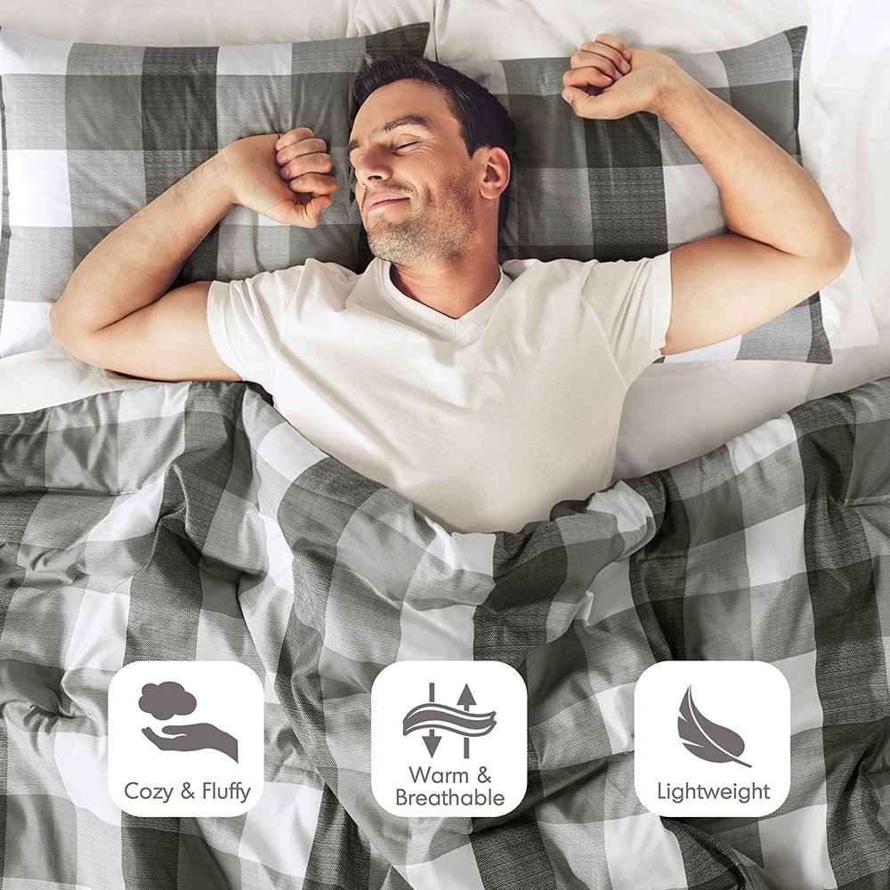 | Comfort Spaces King/Cal King 1 Comforter: 104"W x 90"L 2 King Shams: 20"W x 36"L + 2"D (2) Comforter/sham: Printed microfiber on face, solid reverse, polyester fill. Casual Style Includes 3 Piece(s) Machine washable Revisit our classic plaid bedding set with a high-resolution printed woven-like texture that exudes style and comfort. Crafted from soft, breathable microfiber, this lightweight and fluffy set is ideal for year-round use. The set holds an Oeko-Tex certification, highlighting our dedication to safety and non-irritating skin contact. Suitable for young to old, this bedding set artfully blends a classic design with modern comfort and practical features, making it a reliable choice for your sleeping needs. |