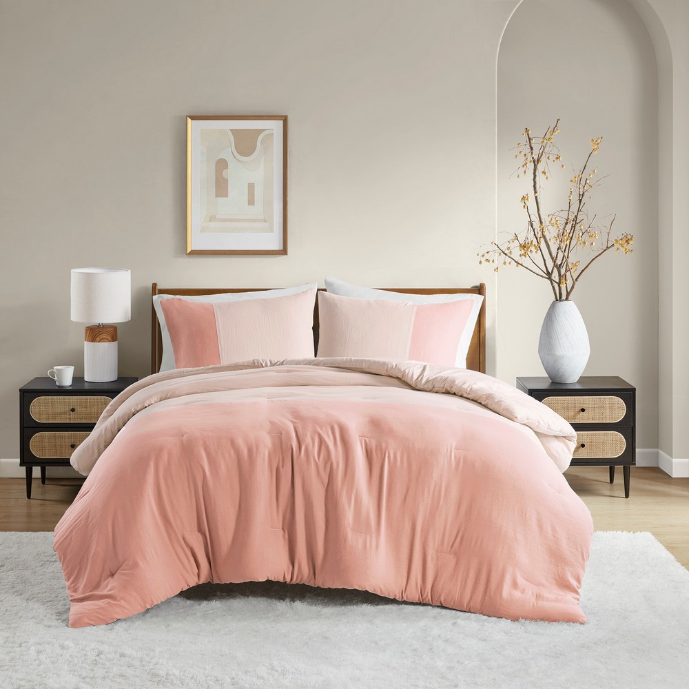Miro Pink Soft Washed Color Block Comforter Set King