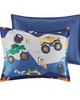 | Mi Zone Kids Twin 1 Comforter: 66"W x 86"L 1 Standard Sham: 20"W x 26"L 1 Decorative Pillow: 12"W x 16"L Comforter/Sham: 100% polyester brushed fabric, printed, brushed fabric solid reverse, polyester filling; sham with overlap closure at back. Pillow: 100% polyester brushed fabric, 100% polyester fill Casual Style Includes 3 Piece(s) Machine Wash. Spot Clean Pillow Cruise off to dreamland with the Mi Zone Kids Nash Printed Comforter Set. This ultra-soft blue and grey comforter and shams (1 in Twin/TwinXL) features a colorful monster truck print and a solid blue reverse to create a fun and exciting look. An oblong decorative pillow with a plush applique truck on the face completing the comforter set. Machine washable for easy care, this boy’s first comforter set offers an adorable update to your child’s bedroom. This child’s comforter set uses an antimicrobial treatment that provides built-in freshness protection, reducing the growth of odor causing bacteria to keep fabric lasting longer. Items in the set may come in a rolled or compressed packaging, which will need to be fluffed up or steam ironed before use to remove wrinkles. |