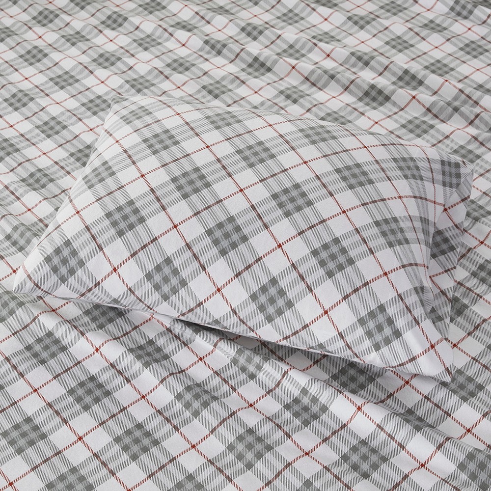 | True North By Sleep Philosophy Cal King 1 Flat Sheet: 108"W x 102"L 1 Fitted Sheet: 72"W x 84"L + 14"D 2 Pillowcases: 20"W x 40"L (2) 100% Cotton flannel Casual Style Includes 1 Piece(s) MACHINE WASH COLD, GENTLE CYCLE, AND SEPARATELY. DO NOT BLEACH. TUMBLE DRY LOW, REMOVE PROMPTLY. DO NOT IRON. IF THERE IS NO FREE MOVEMENT IN THE WASHER OR DRYER, USE LARGE CAPACITY COMMERCIAL WASHER/DRYER. Keep warm and cozy with this ultra-soft cotton flannel sheet set, perfect for cold winter nights! Featuring a variety of prints these cotton flannel sheets provide a soft and inviting look. Machine washable for easy care. These cotton flannel sheets are also OEKO-TEX certified, meaning they do not contain any harmful substances or chemicals, ensuring quality comfort and wellness. Set includes: 1 Flat Sheet, 1 Fitted Sheet, 2 Pillowcases (1 in Twin/TwinXL sizes). |