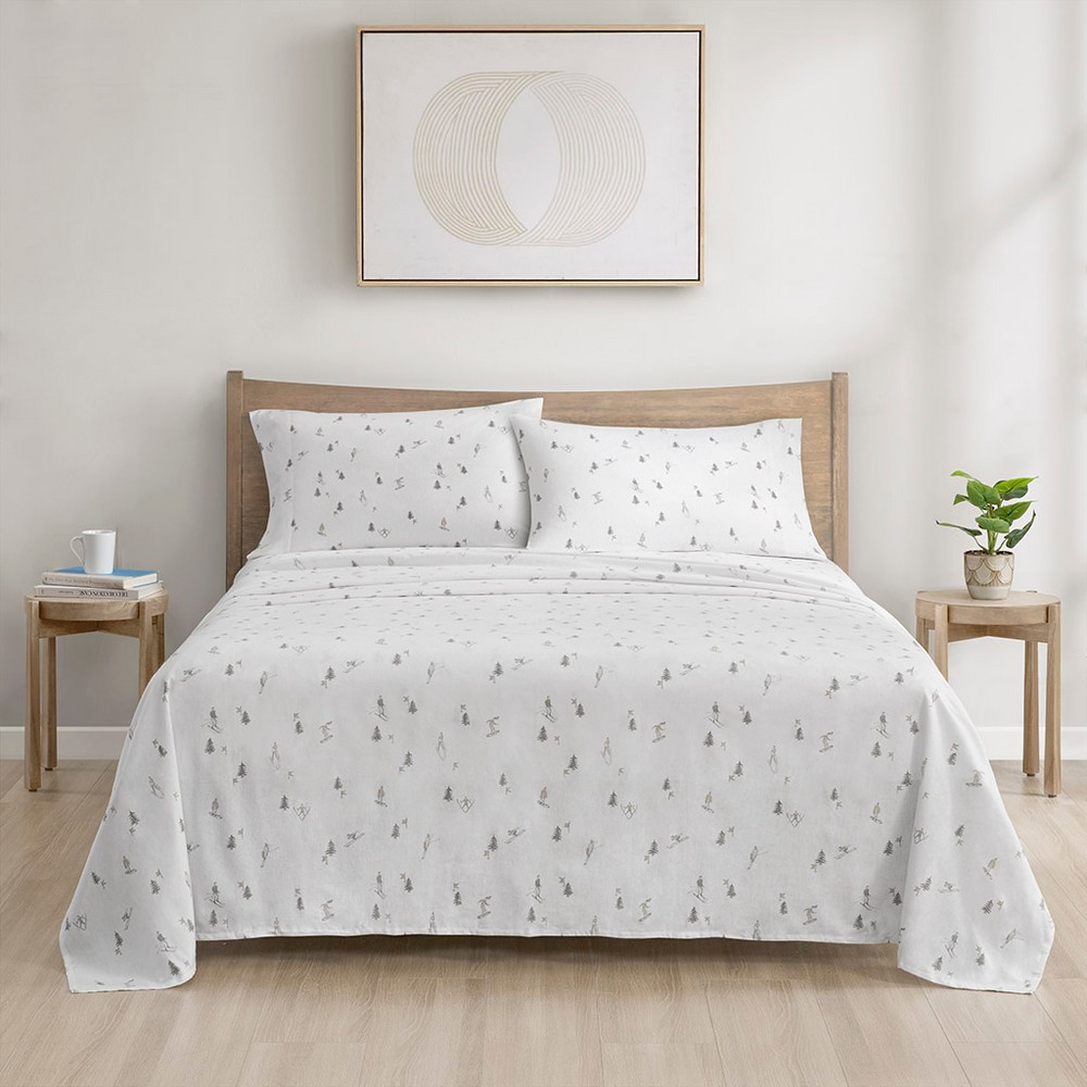 | True North By Sleep Philosophy Cal King 1 Flat Sheet: 108"W x 102"L 1 Fitted Sheet: 72"W x 84"L + 14"D 2 King Pillowcases: 20"W x 40"L (2) 100% Cotton flannel Rustic/Lodge/Cabin Style Includes 4 Piece(s) Machine washable Keep warm and cozy with this ultra-soft cotton flannel sheet set, perfect for cold winter nights! Featuring a variety of prints these cotton flannel sheets provide a soft and inviting look. Machine washable for easy care. These cotton flannel sheets are also OEKO-TEX certified, meaning they do not contain any harmful substances or chemicals, ensuring quality comfort and wellness. Set includes: 1 Flat Sheet, 1 Fitted Sheet, 2 Pillowcases (1 in Twin/TwinXL sizes). |