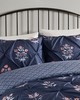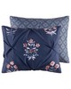 Featuring a floral print on a navy ground with pintuck technique, this microfiber duvet cover set exudes a modern farmhouse style that adds a touch of elegence to any bedroom. Also included are two matching shams to complete the set. Colors featured in the floral motifs include shades of peach, blush, red, teal, and white. The duvet cover come with button closures and 4 inner ties to help keep your duvet insert secured (inserts sold separately).