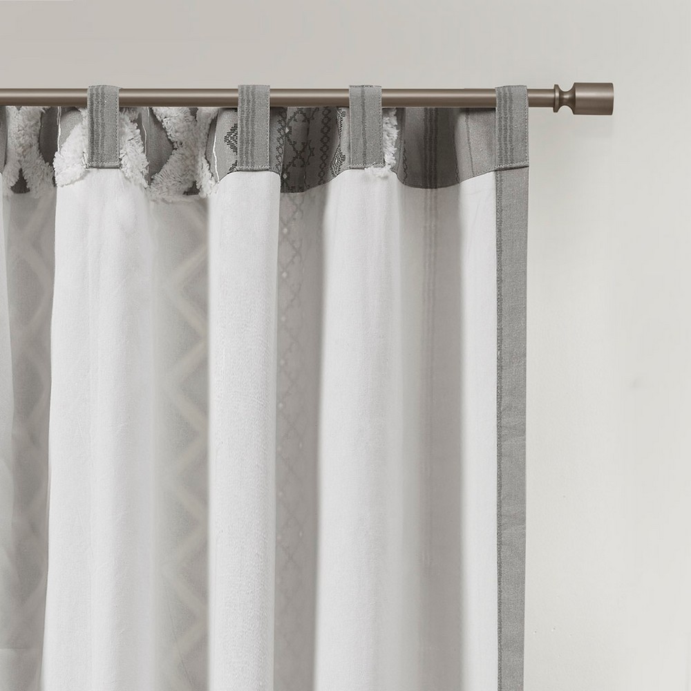 | Ink+ivy 50x95" 1 Window Panel: 50"W x 95"L 100% cotton, printed and tufted with chenille, with cotton lining on the back. Finished with rod pockets and back tabs; fits up to 1.25 inches diameter rod. Mid-Century Modern Style Includes 1 Piece(s) • Machine Washable • Hang Dry • Fabric may need to be steamed or pressed after wash The INK+IVY Imani Cotton Printed Window Panel with Chenille Stripe and Lining offers a chic and casual update to your home. This ivory window panel features a geometric print with a tufted chenille stripe trim, for a textured artisanal look and feel. A lightweight white cotton lining on the reverse softly filters light, while providing better drapability and added privacy. In addtition, this 100% cotton curtain panel is also OEKO-TEX certified, meaning it does not contain any harmful substances or chemicals for the best in quality comfort and wellness. Each panel is finished with a rod pocket top for easy hanging, and back tabs for a more clean and tailored finish. This window panel is sold as a single and 2 window panels must be purchased to cover any standard size window. Complete the look with coordinating bedding sets and bath decor, available and sold separately. |